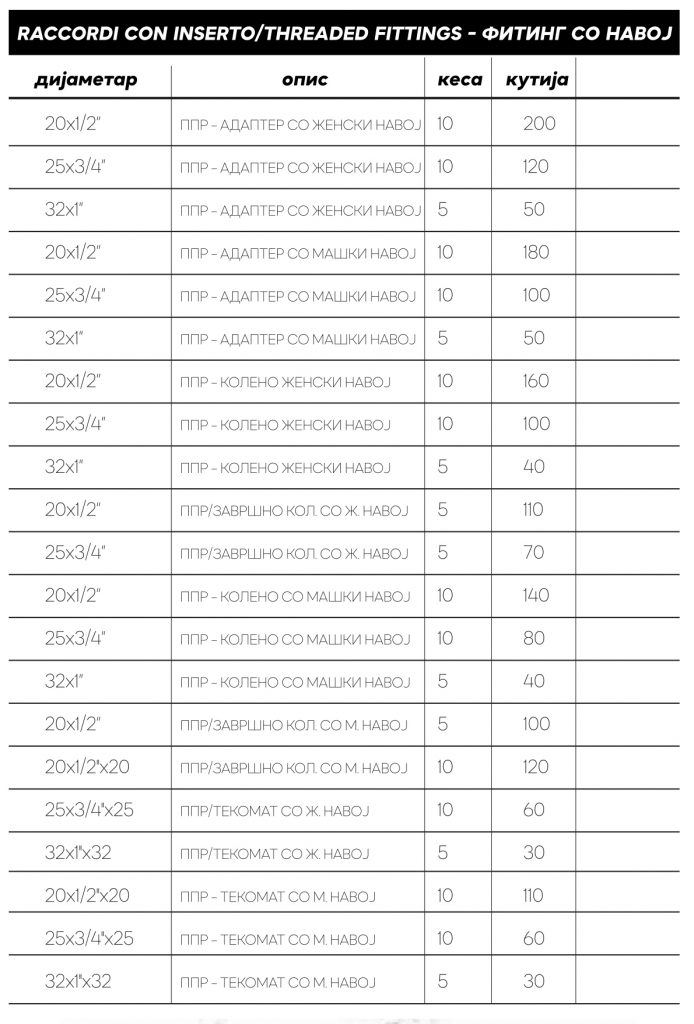 ППР АДАПТЕР Ж 20*1/2 ,ППР АДАПТЕР Ж 25*3/4 ,ППР АДАПТЕР Ж 32*1 ,ППР АДАПТЕР М 20*1/2 ,ППР АДАПТЕР М 25*3/4 ,ППР АДАПТЕР М 32*1 ,ППР ЗАВРШНО КОЛЕНО Ж 20*1/2 ,ППР ЗАВРШНО КОЛЕНО Ж 25*3/4 ,ППР ЗАВРШНО КОЛЕНО М 20*1/2 ,ППР КОЛЕНО 90 Ж 20*1/2 ,ППР КОЛЕНО 90 Ж 25*3/4 ,ППР КОЛЕНО 90 Ж 32*1 ,ППР КОЛЕНО 90 М 20*1/2 ,ППР КОЛЕНО 90 М 25*3/4 ,ППР КОЛЕНО 90 М 32*1 ,ППР ТЕКОМАТ Ж 20*1/2*20 ,ППР ТЕКОМАТ Ж 25*3/4*25 ,ППР ТЕКОМАТ Ж 32*1*32 ,ППР ТЕКОМАТ М 20*1/2*20 ,ППР ТЕКОМАТ М 25*3/4*25 ,ППР ТЕКОМАТ М 32*1*32 |